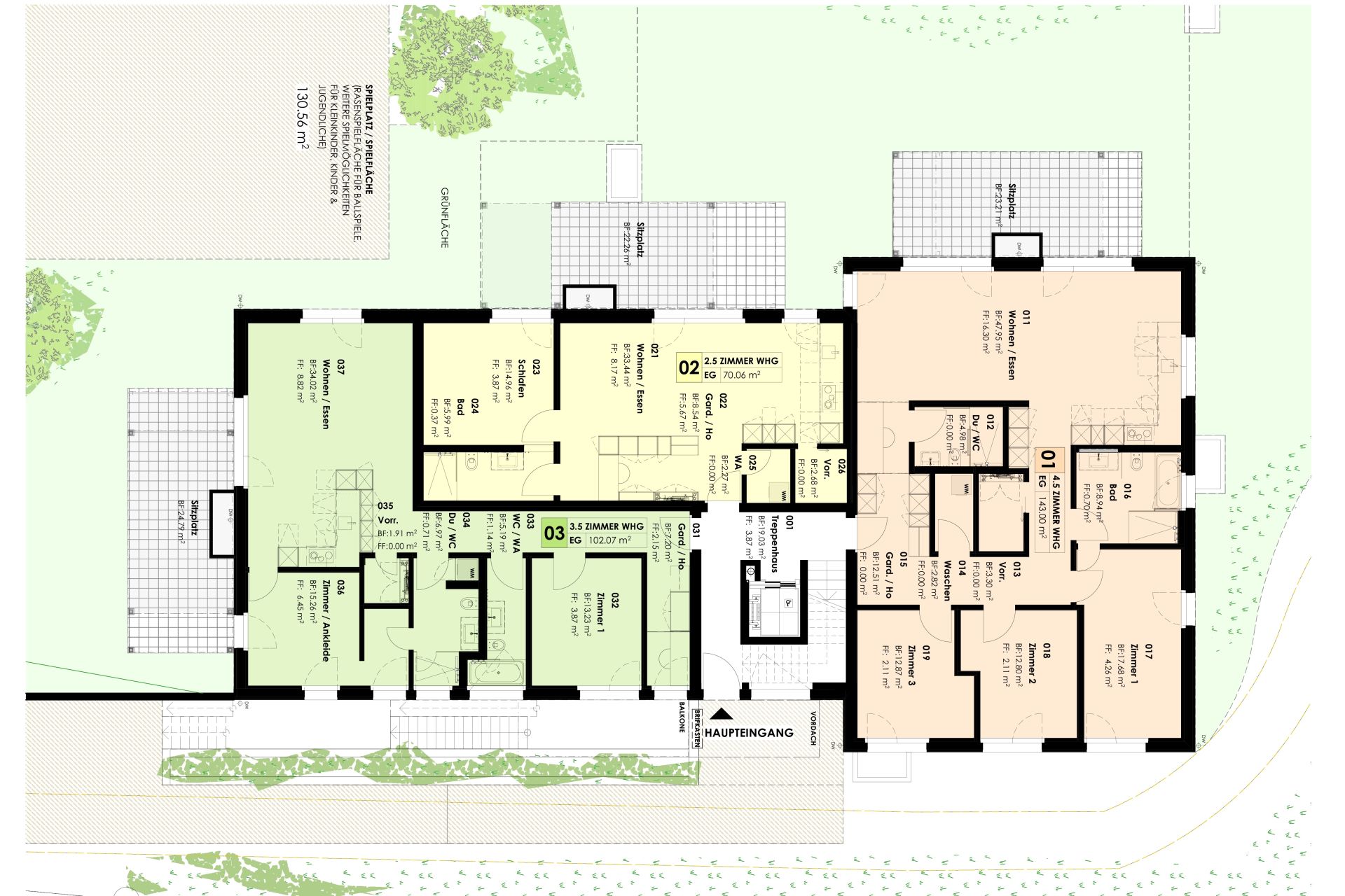 Der 4-geschossige Holzbau weist eine ausserordentlich gute Ökobilanz aus. Wo es der Brandschutz möglich machte, wurden Holzfaserdämmungen eingesetzt. Massive Holzböden aus Eiche können bei Bedarf mehrfach nachgeschliffen werden. Die kurze Trockenbauweise ermöglicht es den Bewohnern in bereits bautrockene Wohnungen einzuziehen. Die natürliche thermodynamische Lüftung ist mit der Ergänzung der Parallelabsteller bei den Fenstern äusserst angenehm so ohne Motoren.