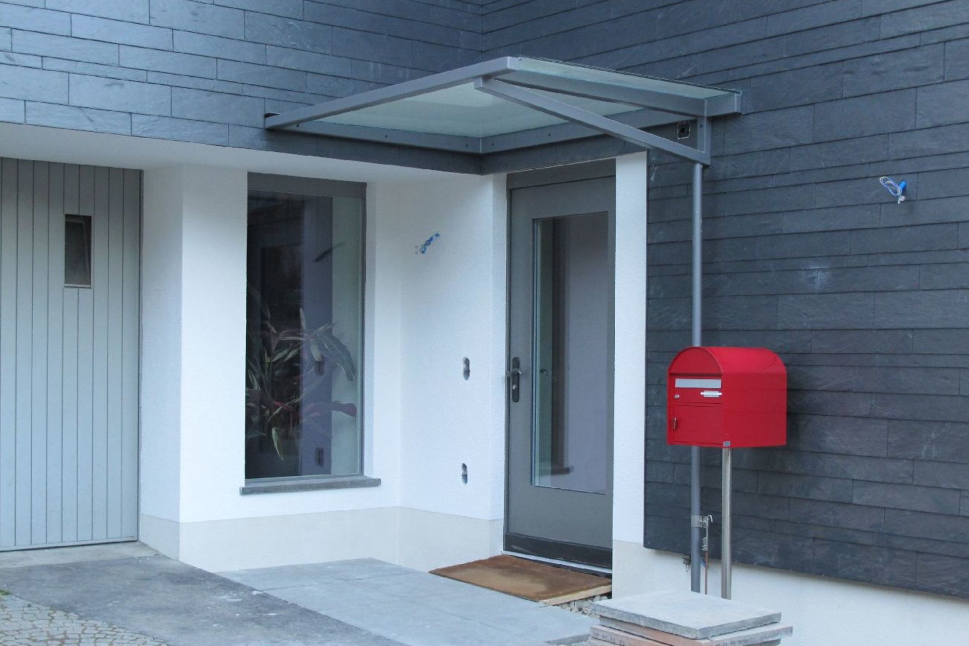 Die Gebäudehülle wurde energetisch saniert, hinterlüftet und mit Schiefer bekleidet. Die ersetzten Fenster tragen zu einem wesentlich besseren Wohnklima bei.