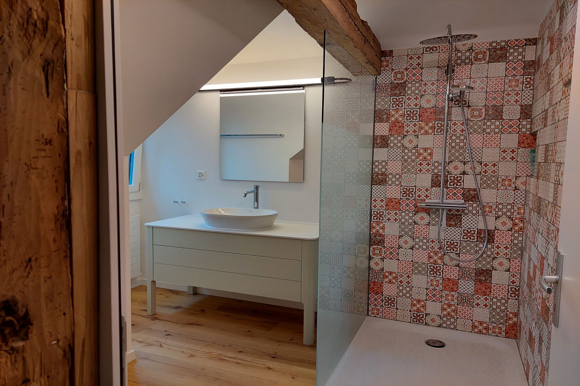 Wenn schon, dann richtig! Mit zwei zusätzlichen Lukarnen im DG lassen sich das Badzimmer und Schlafzimmer viel optimaler nutzen. Die vergrösserte dem Wohnen zugewandte Wohnküche ist sehr individuell. Der zusätzliche Balkon im 1.OG lässt die Abendsonne mit Blick auf die Thur geniessen.
