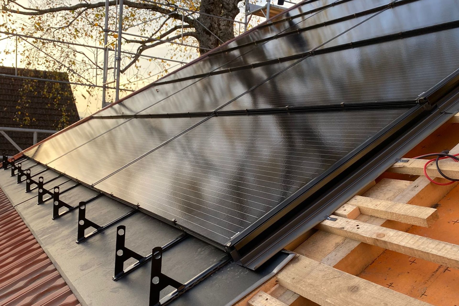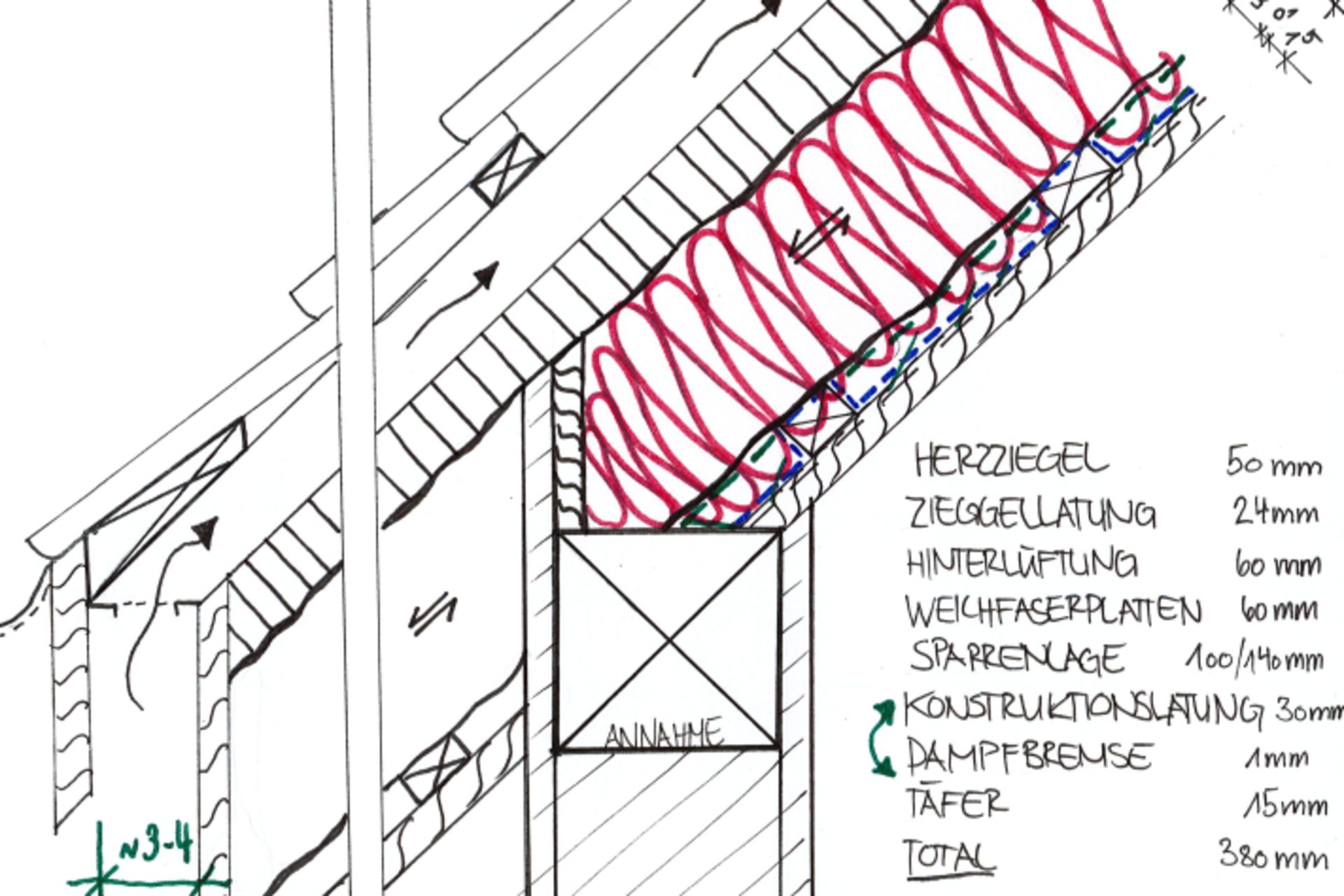Die Oelheizung weicht einer Erdsondenheizung. Durch die Dämmungsarbeiten wird der Heizungsbedarf jedoch massiv geringer sein. Die PV-Anlage ist grösser wie üblich und wird an diesem sonnigen Standort einen grossen Beitrag leisten.